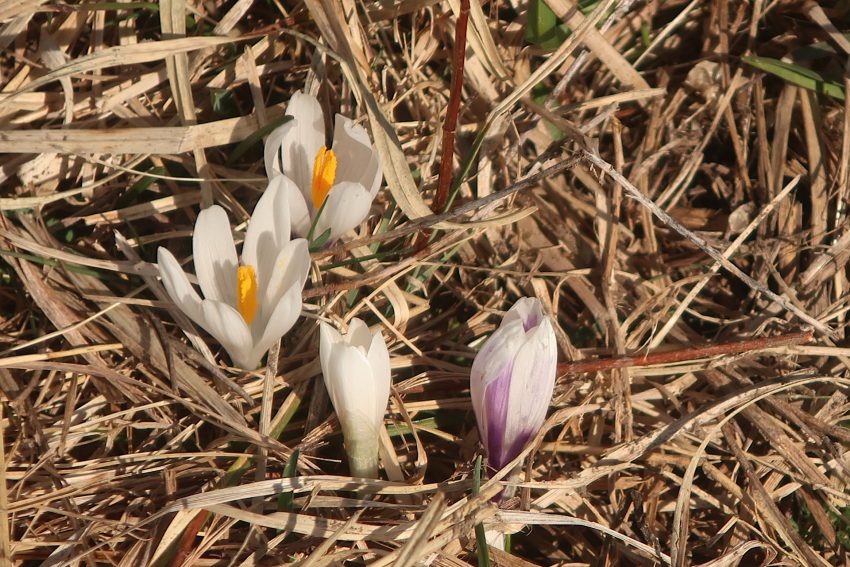 Am Gaisberg ist es schon ziemlich frühlingshaft. Der meiste Schnee ist abgeschmolzen. Zwischen der Straße auf den Gipfel und dem Paraglider Startplatz West und am Gipfel blühen immer mehr (wilde, kleine) Krokusse. Da heute autfreier Tag am Gaisberg war waren fast keine Autos am Gipfel.